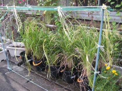 いよいよスズメとの戦闘開始です。イネをネットで覆いました。これで,諦めてくれればいいのですが・・・ネットの網目が大きいのがちょっと不安です。しばらく様子を見てみたいと思います。