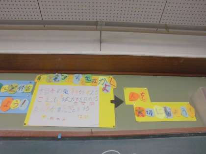 掲示物をつくるのも,もちろん子どもたち自身の役割です。それぞれが割り当てられた役割について前向きに取り組み,協力し合いながら完成しました。