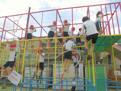 遊具を安全に使えるために,約束を聞いたり,実際に遊具を使って確かめたりしました。
