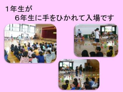 と一人ずつ紹介していきます。一人一人の1年生,そして,そばについている6年生が,それぞれ輝く瞬間でした。ここで,すごく緊張していたのは,6年生だったかもしれません。6年生のお兄さん,お姉さんとしてのやさしさがあふれていました。