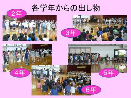 それから,2年生から6年生までが順番に出し物をしていきました。どの学年も,「1年生のために」「1年生を喜ばせよう」と工夫をこらしていました。1年生の子どもたちにはどのように伝わったでしょうか。