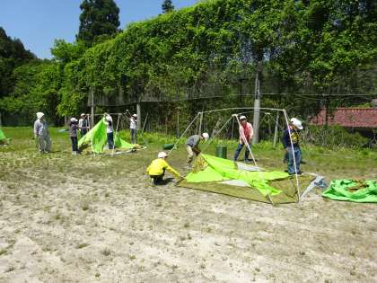 テント設営は、順調です。