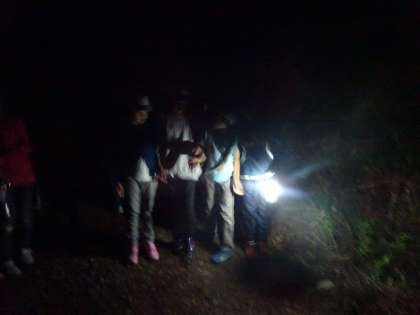 別所小学校の裏山を少し登り、グループに1つだけランタンを持って、別所小学校に帰ります。