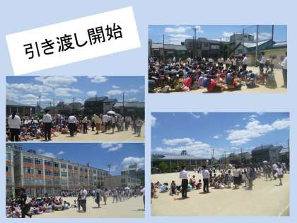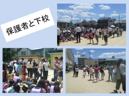 そして,すべての子どもたちが安全にグラウンドに避難したあと,引き渡しを開始しました。