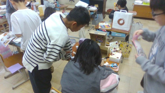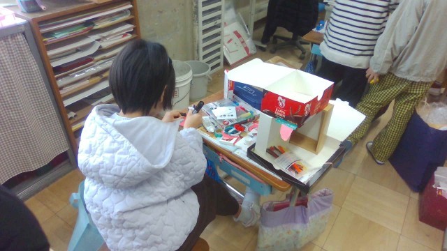 図画工作科で「友だちハウス」の学習をしました。小さいなお友だちが、楽しく暮らせるお家をアイディアいっぱいに作りました。「エレベーターがあってすごいね。」「ここではおよぐことができるよ。」と、とても素敵なお家がたくさんできました。