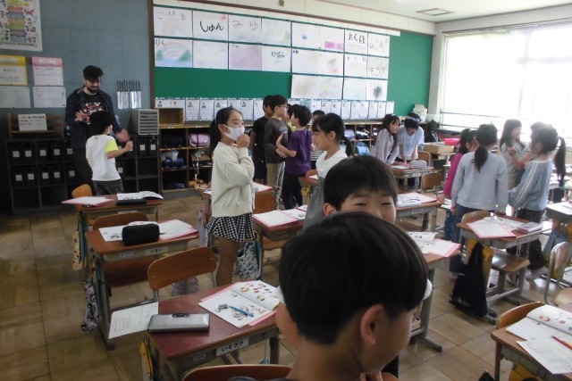 3年 外国語 「Hello!」 公開日 2026/04/20 更新日 2026/04/20 3年担任から ALTのジョーイ先生と一緒に世界の様々なあいさつを学習しました。お気に入りのあいさつを選び、友達と交流することができました。
