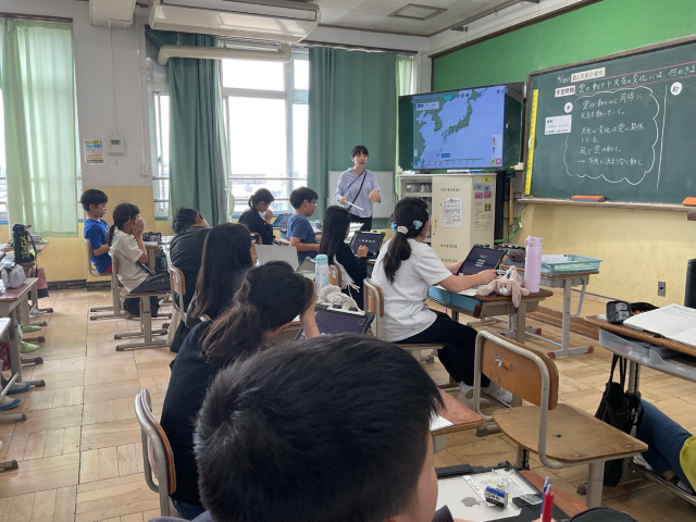 理科の「雲と天気の変化」で、雲の動きと雨が降っている地域を観察しました。