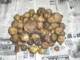 昨年度から育ててきたジャガイモを収穫しました。茎の根元を掘り起こしてみると,大...