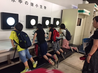 前半は4・5年が実験をしました。1年から3年生は,センターの中で展示学習です。