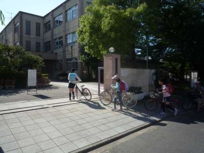 4年生の子ども達は朝から自転車を押して登校して来ました。