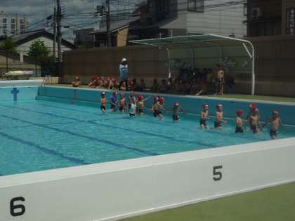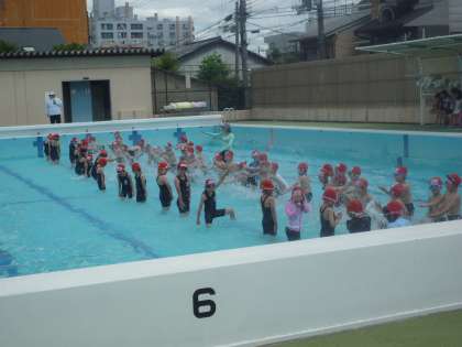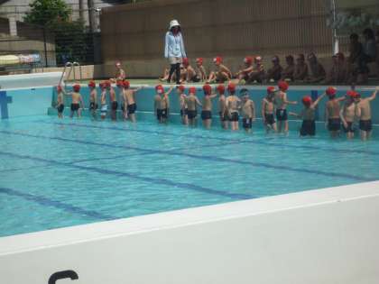 先生の「1」「2」の番号に合わせてプールに入ります。