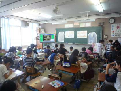すいすいと縫っている子や悪戦苦闘しながら縫っている子もいます。エプロンの出来上がりが楽しみです。