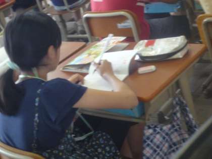 学習が終わると,それぞれの子ども達がイングリッシュパスポートに感想を書き残していきます。