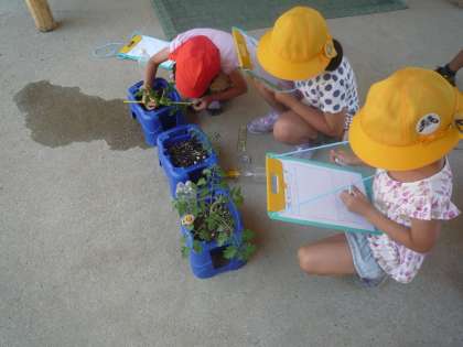 「何センチ」定規で図って観察カードに記入します。