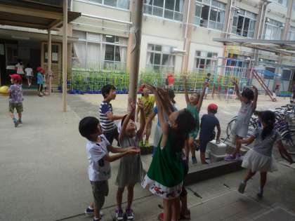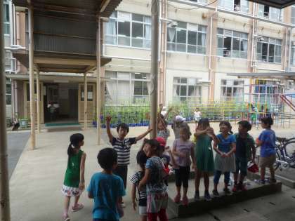 子ども達が「涼しーい」と集まってきました。
