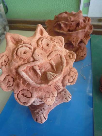 5年生の教室にはかわいらしいシーサーが並んでいます。
