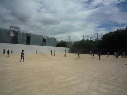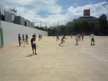 体育館の工事を行っているので,運動場が随分狭くなっていますが,子ども達は上手に遊んでいます。