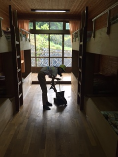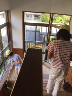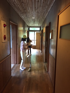 自分たちが使っていた部屋が終わったら廊下,階段,ミーティングルームもきれいにします。