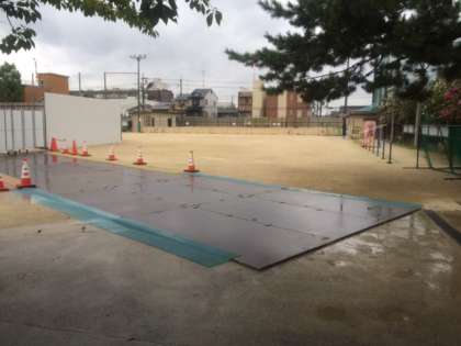 本日予定しておりました「校庭への土入れ」につきましては,雨天のため中止といたします。