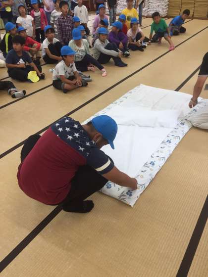 寝具の準備の仕方や片付け方について教えていただきました。