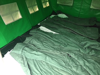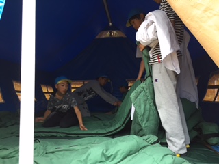 テントの中にシュラフ(寝袋)を敷いています。