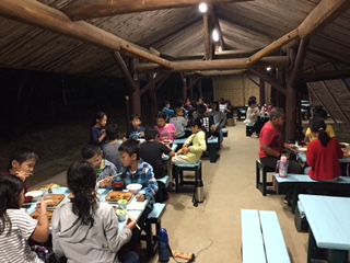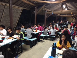 夕食の時間になりました。この後は「ナイトハイク」が予定されています。