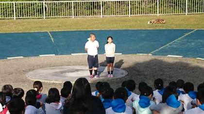 代表の子どもが,上手に朱八校の学校紹介をしてくれました。