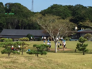 広々とした芝生広場で,思い切り楽しんでいます。