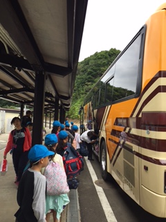 退所式を終え,いよいよみさきの家とお別れです。楽しい思い出がたくさんできました。バスに乗って鳥羽水族館に向かいます。