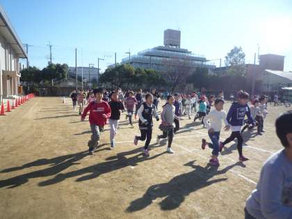 子ども達は中間マラソンで頑張って走りました。