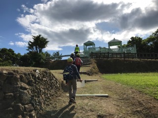 写真がたくさん載っているカードを見て,クイズに答えながらラリーをします。グループによってコースが何通りかあるので,途中で他のグループと分かれたり合流したり,迷いながらも頑張っていました。