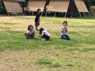 昨日の野外スポーツの時間が短かったので,芝生で過ごせて嬉しそうな子どもたちです。