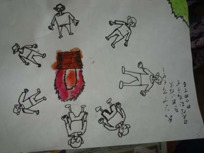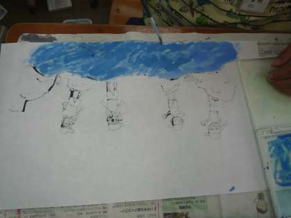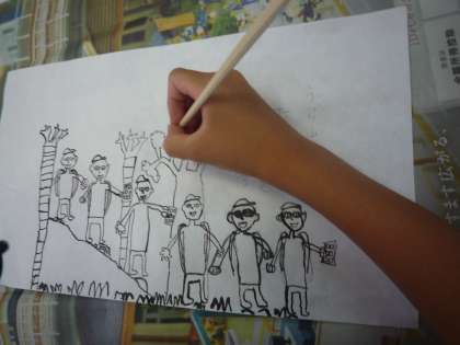 みさきの家で楽しかったことを思い出し,絵とことばでかいています。