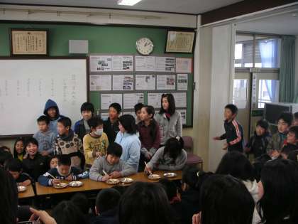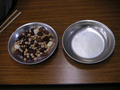 今日のお昼休みに「豆つまみ大会」(5・6年生)をしました。「豆つまみ大会」は、各クラスの代表選手5人が、いろいろな種類の豆を箸でつまみ、30秒間にお皿からお皿へ、いくつ移せるかを競います。各クラスともすごい応援で、盛り上がっていました。今日の結果は、5年3組が75個で優勝しました。