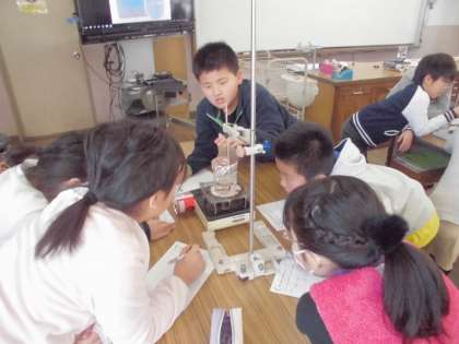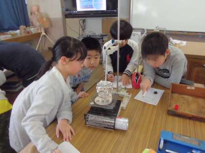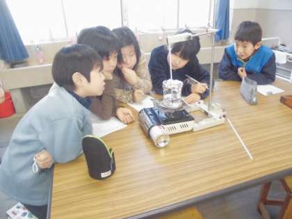 水を熱っし,1分後,2分後,3分後と1分おきに水の温度と様子を記録していきました。