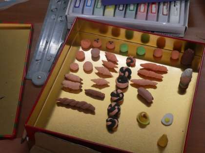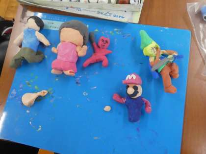 今年度できたアート部では,作品展に向けて紙粘土でお店屋さんやアニメのキャラクターを作っています。トマトやピーマンを売っている八百屋さんやクロワッサンやホットドッグを売っているパン屋さんなど,すてきな作品がどんどんできてきています。作品展が楽しみです。