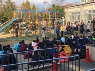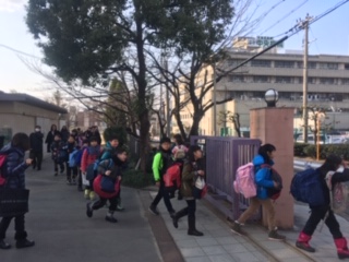 寒さは厳しいですが晴天にめぐまれて,学校での出発式の後,全員元気に出かけました。