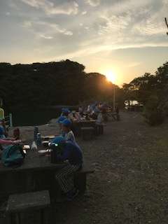 ステキな夕日を見ながら食事をいただいています。