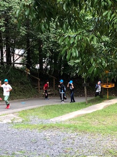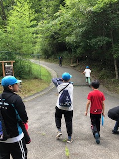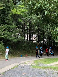 フリスビーを投げ,ゴルフのように何回でゴールに入るかを競います。