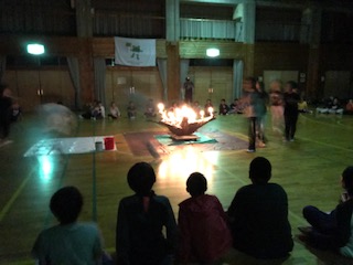 夕方に雷雨があったので,キャンプファイヤーからキャンドルファイヤーに変更しました。ろうそくの温かなともしびの中ゲームを楽しみました。