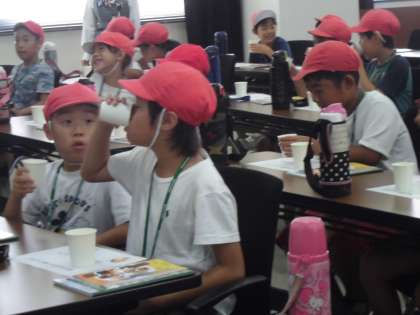 9月3日に,島津製作所の本社へ社会見学に行ってきました。校区たんけんの時も敷地の広さに驚いていましたが,「甲子園球場の5.5倍」と聞いてびっくりの子どもたちでした。軟水と硬水の飲み比べから始まり,人間の感覚でははっきりしないことも,分析機器で調べると一目瞭然だということに驚いた様子でした。