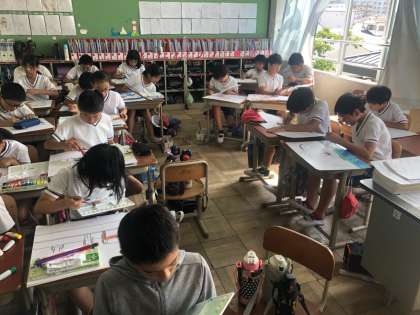 絵の具で,丁寧に色付けをしています。塗り方を工夫しています。