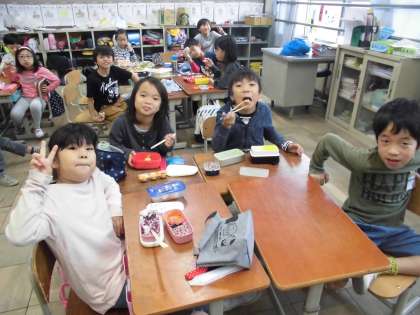 今日はあいにくのお天気で,遠足は来週に中止になりました。残念でしたが,今日一番のお楽しみお弁当の時間には大盛り上がりの子どもたちでした。お忙しい中,お弁当の準備,ありがとうございました。来週もよろしくお願いします。