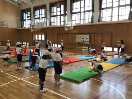 2組の子どもたちは準備,片付け名人!少しでも長く活動できるようにと,大きなマットを4,5人で協力して運び,準備をあっという間に終えてしまいます。