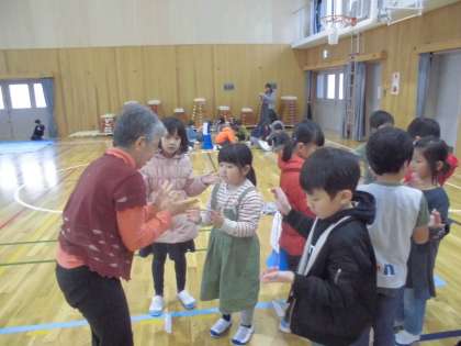 女性会の方々に来ていただき,1・2年生が昔遊び大会を行いました。