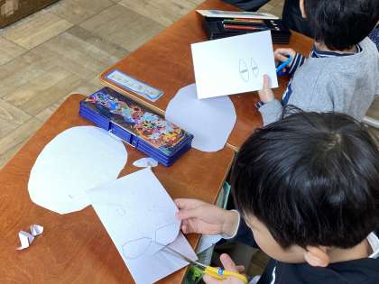 図工の学習では,紙版画に挑戦しています。先生の説明をしっかりと聞いて,丁寧にパーツづくりをしていました。