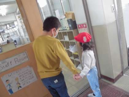 昨日,5年生と洛陽幼稚園との交流会がありました。