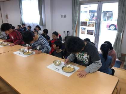 17日(月)の中間休みに3・4年生の豆つまみ大会がありました。本番では緊張して力を発揮しきれなかった子もいたようですが,とても集中して豆をつまむ姿はかっこよかったです。