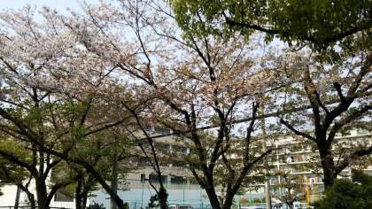 学校の正門のところのさくらは,まだ少し花が残っていますが,若々しい黄緑色のはっぱが,ぐんぐん出てきています。その勢いはすごく,力強さを感じます。また,正門のまわりには,たくさんの花が咲いています。