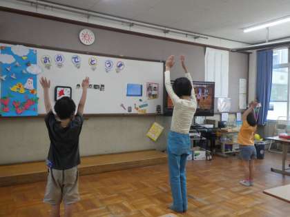 なかなかそとにでられないので,とくれいあずかりできているみんなと,ラジオたいそうをしました。からだをうごかすと,すっきりしました。そのあと,それぞれ,じぶんのやることにとりくみました。